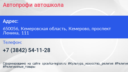 Автопрофи, автошкола по адресу 650056, Кемеровская область, Кемерово, проспект Ленина, 111 в дальнейшем Организация, размещена в следующих категориях: