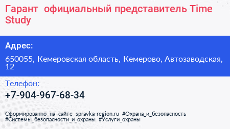 Гарант+, официальный представитель Time Study по адресу 650055, Кемеровская область, Кемерово, Автозаводская, 12 в дальнейшем Организация, размещена в следующих категориях: