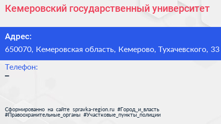 Кемеровский государственный университет по адресу 650070, Кемеровская область, Кемерово, Тухачевского, 33 в дальнейшем Организация, размещена в следующих категориях: