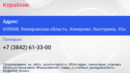 Кораблик по адресу 650068, Кемеровская область, Кемерово, Халтурина, 41а в дальнейшем Организация, размещена в следующих категориях: