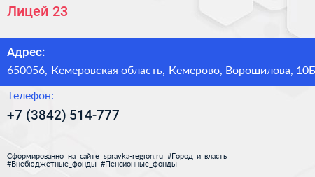 Лицей №23 по адресу 650056, Кемеровская область, Кемерово, Ворошилова, 10Б в дальнейшем Организация, размещена в следующих категориях: