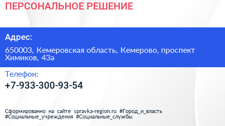 ПЕРСОНАЛЬНОЕ РЕШЕНИЕ по адресу 650003, Кемеровская область, Кемерово, проспект Химиков, 43а в дальнейшем Организация, размещена в следующих категориях: