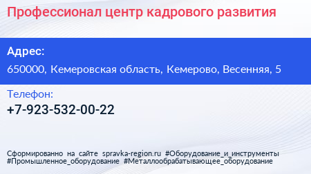 Профессионал, центр кадрового развития по адресу 650000, Кемеровская область, Кемерово, Весенняя, 5 в дальнейшем Организация, размещена в следующих категориях: