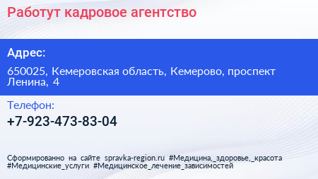 Работут, кадровое агентство по адресу 650025, Кемеровская область, Кемерово, проспект Ленина, 4 в дальнейшем Организация, размещена в следующих категориях: