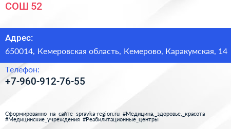 СОШ №52 по адресу 650014, Кемеровская область, Кемерово, Каракумская, 14 в дальнейшем Организация, размещена в следующих категориях: