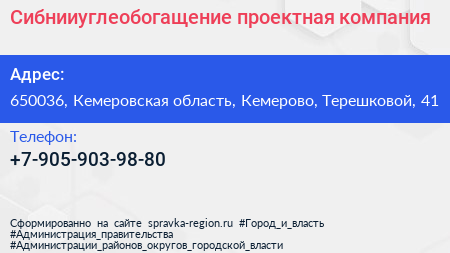 Сибнииуглеобогащение, проектная компания по адресу 650036, Кемеровская область, Кемерово, Терешковой, 41 в дальнейшем Организация, размещена в следующих категориях: