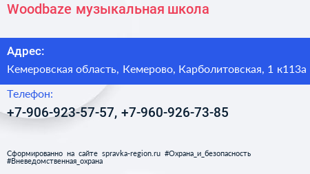 Woodbaze, музыкальная школа по адресу Кемеровская область, Кемерово, Карболитовская, 1 к113а в дальнейшем Организация, размещена в следующих категориях:
