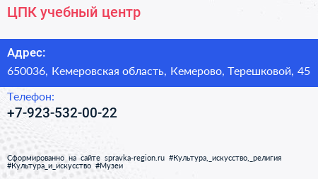 ЦПК, учебный центр по адресу 650036, Кемеровская область, Кемерово, Терешковой, 45 в дальнейшем Организация, размещена в следующих категориях: