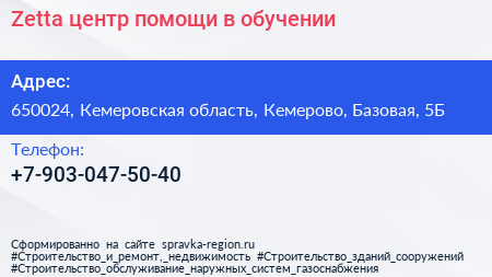 Zetta, центр помощи в обучении по адресу 650024, Кемеровская область, Кемерово, Базовая, 5Б в дальнейшем Организация, размещена в следующих категориях: