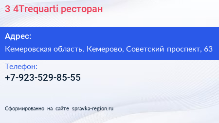 3/4Trequarti, ресторан по адресу Кемеровская область, Кемерово, Советский проспект, 63 в дальнейшем Организация, размещена в следующих категориях: