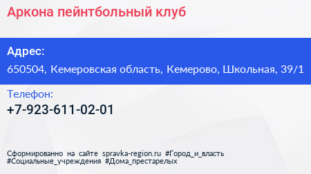 Аркона, пейнтбольный клуб по адресу 650504, Кемеровская область, Кемерово, Школьная, 39/1 в дальнейшем Организация, размещена в следующих категориях:
