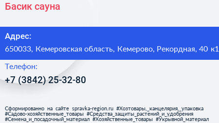 Басик, сауна по адресу 650033, Кемеровская область, Кемерово, Рекордная, 40 к1 в дальнейшем Организация, размещена в следующих категориях: