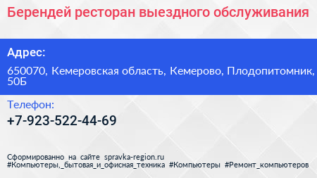 Берендей, ресторан выездного обслуживания по адресу 650070, Кемеровская область, Кемерово, Плодопитомник, 50Б в дальнейшем Организация, размещена в следующих категориях: