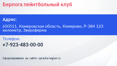 Берлога, пейнтбольный клуб по адресу 650511, Кемеровская область, Кемерово, Р-384 123 километр, Звероферма в дальнейшем Организация, размещена в следующих категориях: