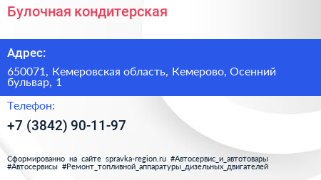 Булочная-кондитерская по адресу 650071, Кемеровская область, Кемерово, Осенний бульвар, 1 в дальнейшем Организация, размещена в следующих категориях: