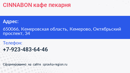 CINNABON, кафе-пекарня по адресу 650066, Кемеровская область, Кемерово, Октябрьский проспект, 34 в дальнейшем Организация, размещена в следующих категориях:
