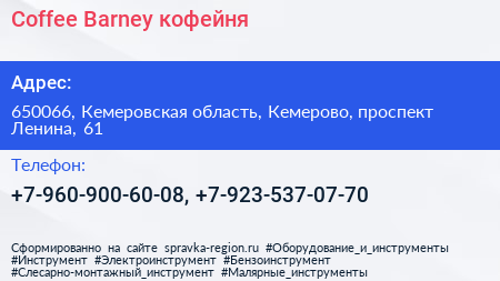Coffee Barney, кофейня по адресу 650066, Кемеровская область, Кемерово, проспект Ленина, 61 в дальнейшем Организация, размещена в следующих категориях: