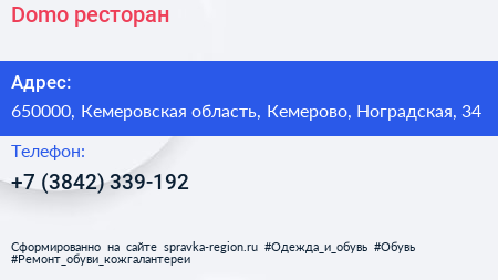 Domo, ресторан по адресу 650000, Кемеровская область, Кемерово, Ноградская, 34 в дальнейшем Организация, размещена в следующих категориях: