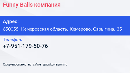 Funny Balls, компания по адресу 650055, Кемеровская область, Кемерово, Сарыгина, 35 в дальнейшем Организация, размещена в следующих категориях: