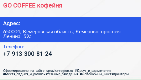 GO COFFEE, кофейня по адресу 650004, Кемеровская область, Кемерово, проспект Ленина, 59а в дальнейшем Организация, размещена в следующих категориях: