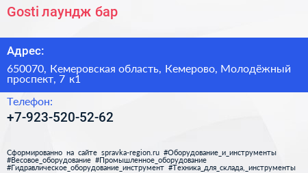 Gosti, лаундж-бар по адресу 650070, Кемеровская область, Кемерово, Молодёжный проспект, 7 к1 в дальнейшем Организация, размещена в следующих категориях: