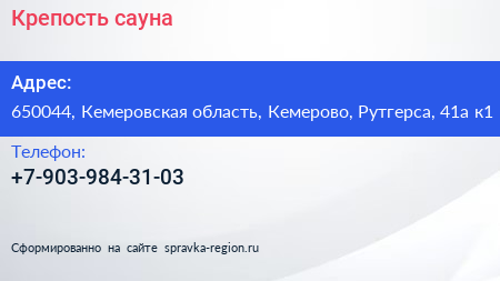 Крепость, сауна по адресу 650044, Кемеровская область, Кемерово, Рутгерса, 41а к1 в дальнейшем Организация, размещена в следующих категориях: