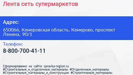 Лента, сеть супермаркетов по адресу 650066, Кемеровская область, Кемерово, проспект Ленина, 90/1 в дальнейшем Организация, размещена в следующих категориях: