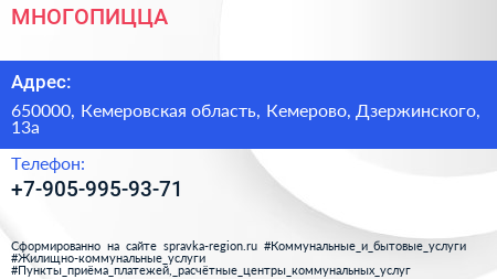 #МНОГОПИЦЦА по адресу 650000, Кемеровская область, Кемерово, Дзержинского, 13а в дальнейшем Организация, размещена в следующих категориях: