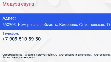 Медуза, сауна по адресу 650903, Кемеровская область, Кемерово, Стахановская, 19 в дальнейшем Организация, размещена в следующих категориях: