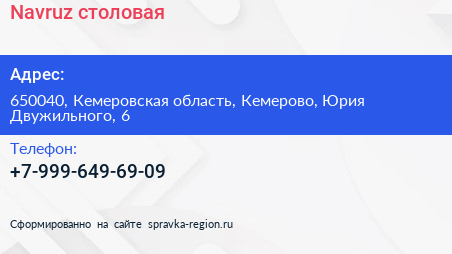 Navruz, столовая по адресу 650040, Кемеровская область, Кемерово, Юрия Двужильного, 6 в дальнейшем Организация, размещена в следующих категориях: