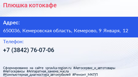 Плюшка, котокафе по адресу 650036, Кемеровская область, Кемерово, 9 Января, 12 в дальнейшем Организация, размещена в следующих категориях: