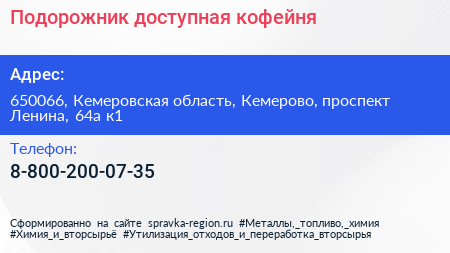 Подорожник, доступная кофейня по адресу 650066, Кемеровская область, Кемерово, проспект Ленина, 64а к1 в дальнейшем Организация, размещена в следующих категориях: