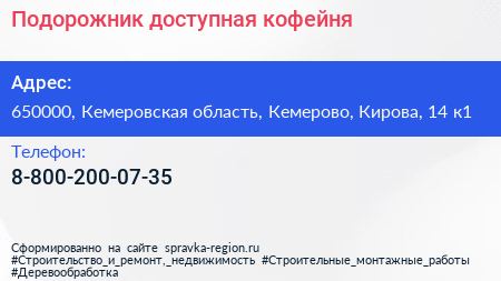 Подорожник, доступная кофейня по адресу 650000, Кемеровская область, Кемерово, Кирова, 14 к1 в дальнейшем Организация, размещена в следующих категориях: