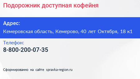 Подорожник, доступная кофейня по адресу Кемеровская область, Кемерово, 40 лет Октября, 18 к1 в дальнейшем Организация, размещена в следующих категориях: