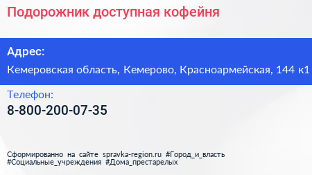 Подорожник, доступная кофейня по адресу Кемеровская область, Кемерово, Красноармейская, 144 к1 в дальнейшем Организация, размещена в следующих категориях: