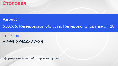 Столовая по адресу 650066, Кемеровская область, Кемерово, Спортивная, 28 в дальнейшем Организация, размещена в следующих категориях: