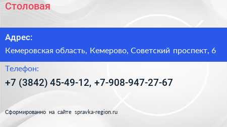 Столовая по адресу Кемеровская область, Кемерово, Советский проспект, 6 в дальнейшем Организация, размещена в следующих категориях: