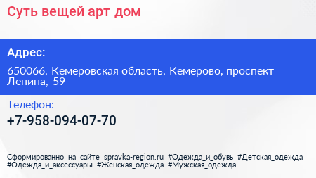 Суть вещей, арт-дом по адресу 650066, Кемеровская область, Кемерово, проспект Ленина, 59 в дальнейшем Организация, размещена в следующих категориях: