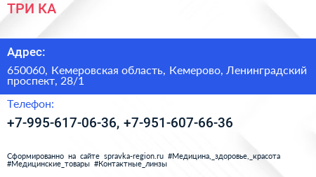 TРИ КА по адресу 650060, Кемеровская область, Кемерово, Ленинградский проспект, 28/1 в дальнейшем Организация, размещена в следующих категориях: