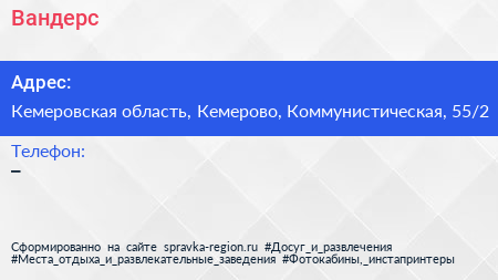 Вандерс по адресу Кемеровская область, Кемерово, Коммунистическая, 55/2 в дальнейшем Организация, размещена в следующих категориях: