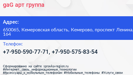 gaG, арт-группа по адресу 650065, Кемеровская область, Кемерово, проспект Ленина, 164 в дальнейшем Организация, размещена в следующих категориях: