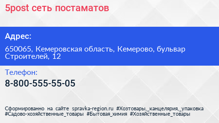 5post, сеть постаматов по адресу 650065, Кемеровская область, Кемерово, бульвар Строителей, 12 в дальнейшем Организация, размещена в следующих категориях: