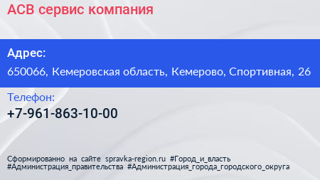 АСВ-сервис, компания по адресу 650066, Кемеровская область, Кемерово, Спортивная, 26 в дальнейшем Организация, размещена в следующих категориях: