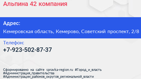 Альпина 42, компания по адресу Кемеровская область, Кемерово, Советский проспект, 2/8 в дальнейшем Организация, размещена в следующих категориях:
