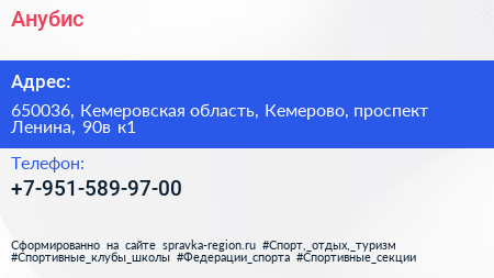 Анубис по адресу 650036, Кемеровская область, Кемерово, проспект Ленина, 90в к1 в дальнейшем Организация, размещена в следующих категориях: