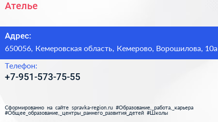 Ателье по адресу 650056, Кемеровская область, Кемерово, Ворошилова, 10а в дальнейшем Организация, размещена в следующих категориях: