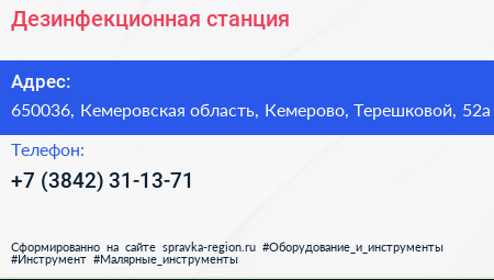 Дезинфекционная станция по адресу 650036, Кемеровская область, Кемерово, Терешковой, 52а в дальнейшем Организация, размещена в следующих категориях: