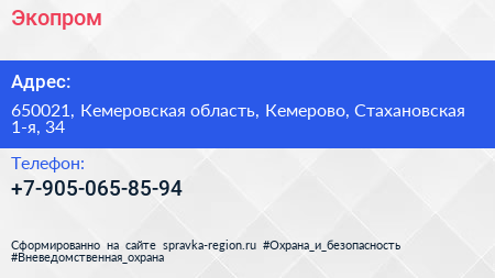 Экопром по адресу 650021, Кемеровская область, Кемерово, Стахановская 1-я, 34 в дальнейшем Организация, размещена в следующих категориях:
