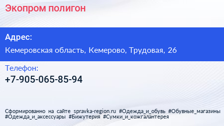 Экопром, полигон по адресу Кемеровская область, Кемерово, Трудовая, 26 в дальнейшем Организация, размещена в следующих категориях: