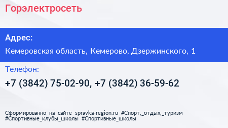 Горэлектросеть по адресу Кемеровская область, Кемерово, Дзержинского, 1 в дальнейшем Организация, размещена в следующих категориях: